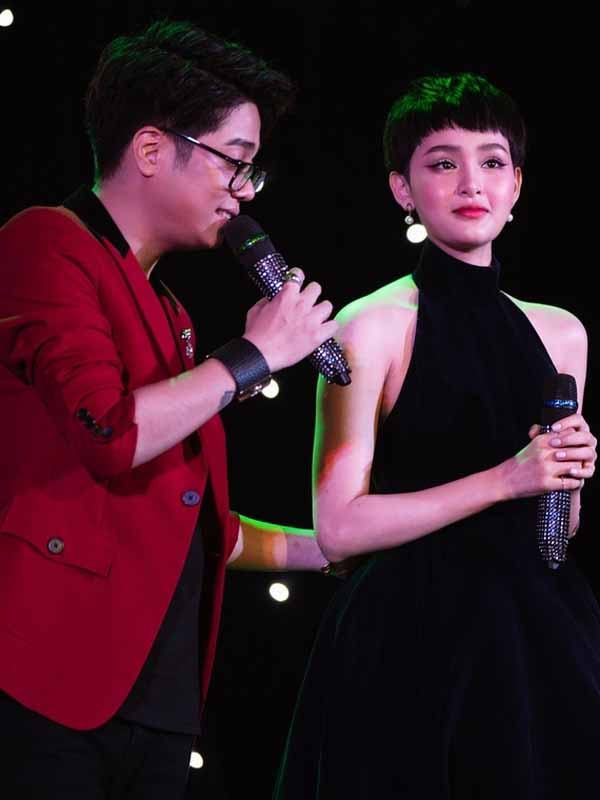 Bùi Anh Tuấn tình tứ ôm eo Hiền Hồ trên sân khấu. Cả hai vướng tin đồn có quan hệ tình cảm sau khi kết hợp ăn ý trong MV ca nhạc song phủ nhận hoàn toàn.