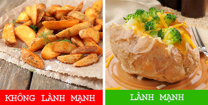 Khoai tây chiên khi vào trong cơ thể sẽ được phân hủy thành đường. Thực phẩm chiên trong dầu ở nhiệt độ cao sẽ giải phóng các gốc tự do, gây tổn thương làn da. Nếu muốn thưởng thức khoai tây, tốt nhất bạn nên nướng nó hoặc chế biến ít dầu mỡ.