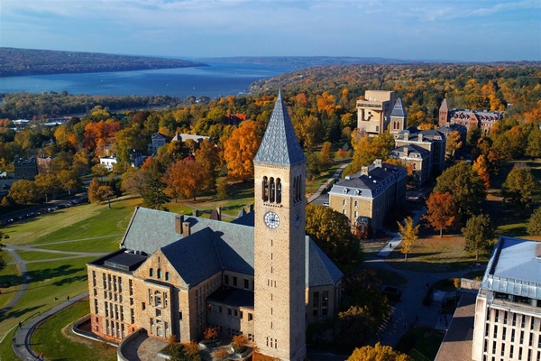 Tọa lạc trên sườn đồi phía trên Hồ Cayuga (nơi du khách có thể khám phá những con đường rượu vang) và giữa rừng cây, hẻm núi và thác nước, Đại học Cornell ở Ithaca chắc chắn là một trong những trường đại học đẹp nhất ở Bang New York. Nó cung cấp cho sinh viên nhiều không gian để thư giãn khi nghỉ học. Sinh viên và du khách sẽ bị ấn tượng bởi sự pha trộn giữa kiến trúc lịch sử và đương đại. Ngoài Bảo tàng Nghệ thuật Herbert F. Johnson, bất kỳ ai đến thăm Ithaca đều không nên bỏ qua Vườn Bách thảo Cornell. Khung cảnh xung quanh biến thành kính vạn hoa đầy màu sắc vào mùa thu, đây là thời điểm tuyệt vời để ghé thăm trường đại học và thậm chí khám phá mạng lưới đường hầm bí mật gần đó của Hồ Finger.