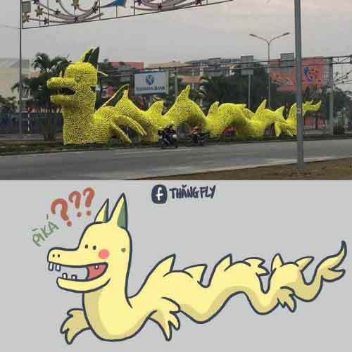 Hình ảnh rồng hoa ngổ ngáo trên đường phố Hải Phòng dịp Tết Đinh Dậu khiến cộng đồng mạng thích thú và trở thành nguồn cảm hứng cho hàng loạt bức ảnh chế hài hước ra đời.