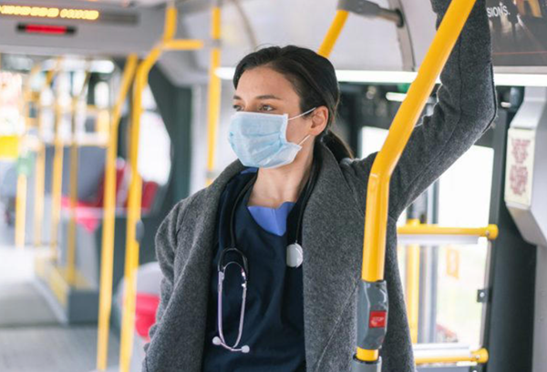 Đeo khẩu trang khi dùng phương tiện công cộng