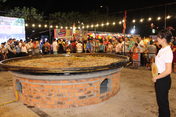 Phiên bản phóng lớn của chiếc bánh xèo truyền thống này được giữ nguyên hương vị từ những nguyên liệu bột gạo xay, tôm, thịt, giá đỗ, nấm, rau sống các loại… với trọng lượng bánh hơn 150kg.