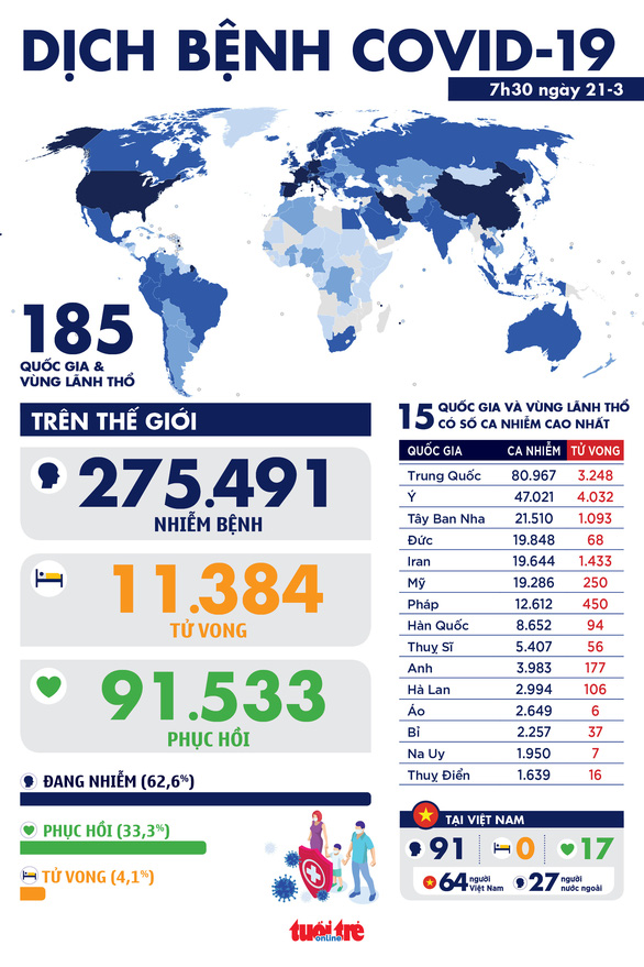 Covid-19 ngày 21/3 – Đồ họa: Tuổi trẻ