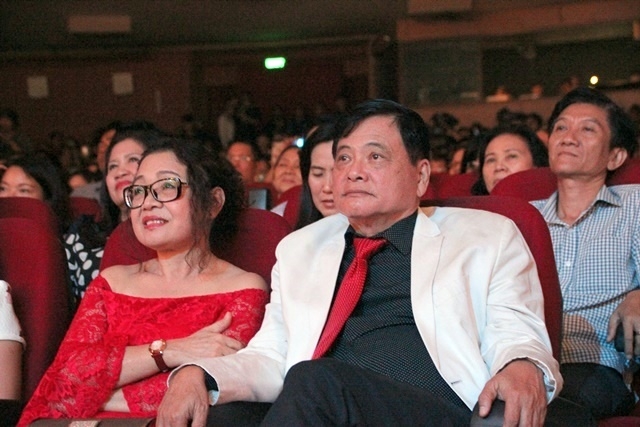 Nhà báo Nguyễn Công Khế lên bắt tay và tặng hoa cảm ơn các nghệ sĩ