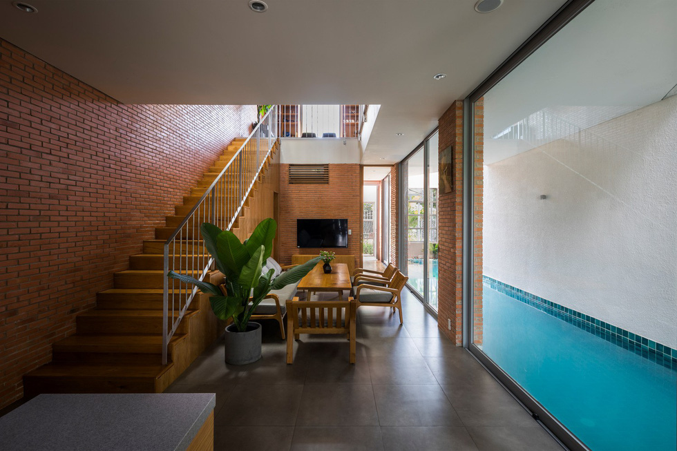 Ha House là tác phẩm của VTN Architects, có diện tích 137 m2 được xây dựng trong năm nay. Cũng là một ngôi nhà cho một gia đình 3 thế hệ, Ha House tọa lạc tại một khu dân cư mới phát triển, cách trung tâm thành phố tầm 15 phút lái xe. Tại khu vực này, nhà cửa san sát nhau, một số nhà còn phải chung vách, dù vậy, nhóm thiết kế cũng đã đáp ứng được nhu cầu của gia chủ về các khoảng xanh, cửa sổ đón nắng tự nhiên và thậm chí là một hồ bơi trong nhà.