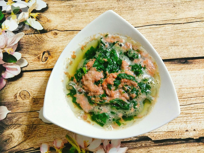 Đổ qua rây để lọc lấy nước tôm cho vào nồi, rau mồng tơi nhặt lấy ngọn non rồi rửa sạch để cho ráo nước, thái vừa nhỏ.