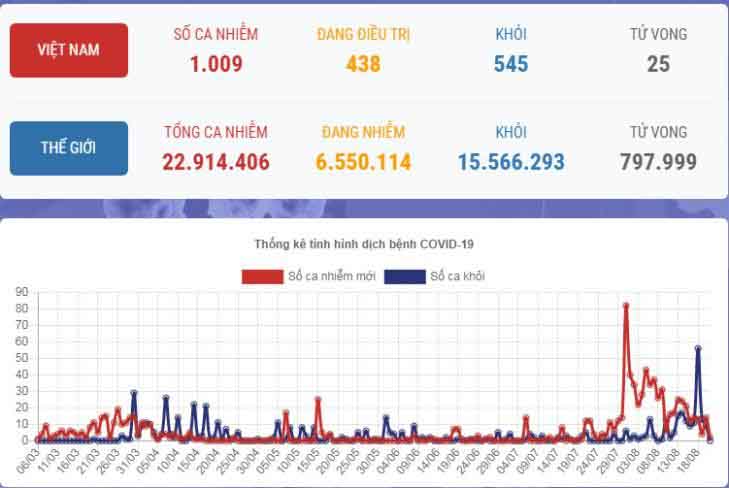 Việt Nam hiện có 1.009 ca mắc COVID-19 với 25 người tử vong: Đà Nẵng 21, Quảng Nam 3, Quảng Trị 1