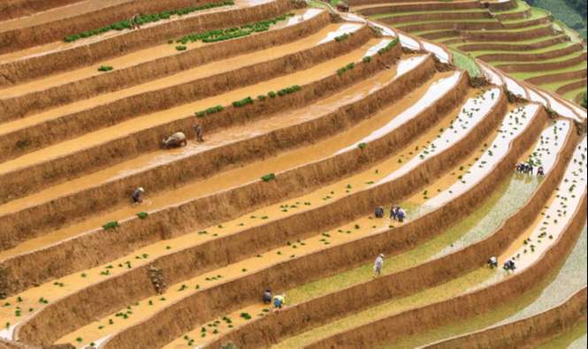 Tác phẩm “Làm ruộng” – Chụp ruộng bậc thang ở Việt Nam khi các nông dân đang cấy lúa cho vụ mùa tới. Ảnh: Diep Van