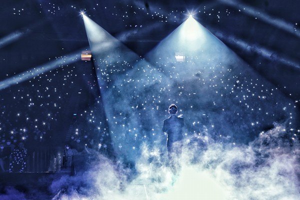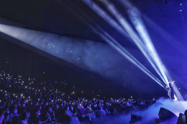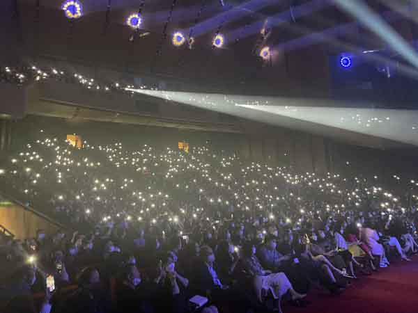 Khán giả dùng đèn flash điện thoại tạo thành hiệu ứng như bầu trời sao trong tiết mục của ca sĩ Bằng Kiều.