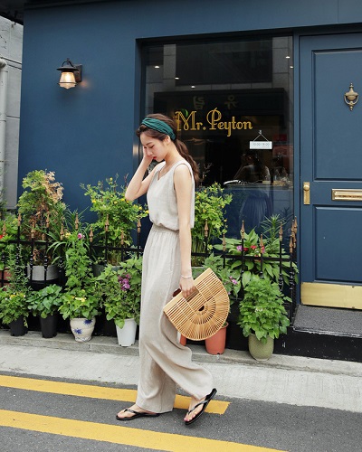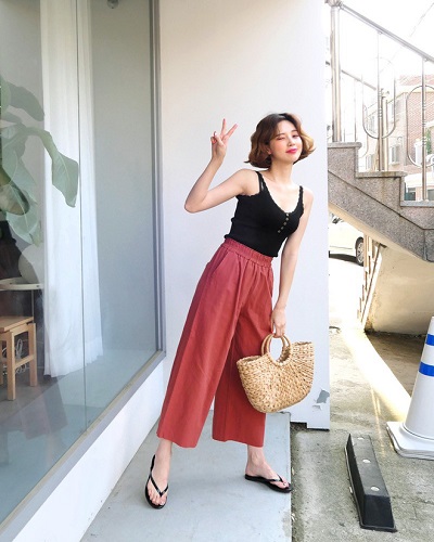 Kiểu quần này thường có thiết kế cạp cao, khi sơ vin cùng áo 2 dây sẽ khiến đôi chân trông dài miên man. Để hoàn thiện set đồ này, bạn hãy chọn những món phụ kiện nhẹ nhàng, mát mẻ như mũ cói, túi cói, túi lưới, dép lê, thậm chí dép tông cũng rất phong cách. Không chỉ hợp với những buổi dạo phố, cà phê cuối tuần, đây còn là gợi ý diện đồ lý tưởng cho những chuyến nghỉ mát.