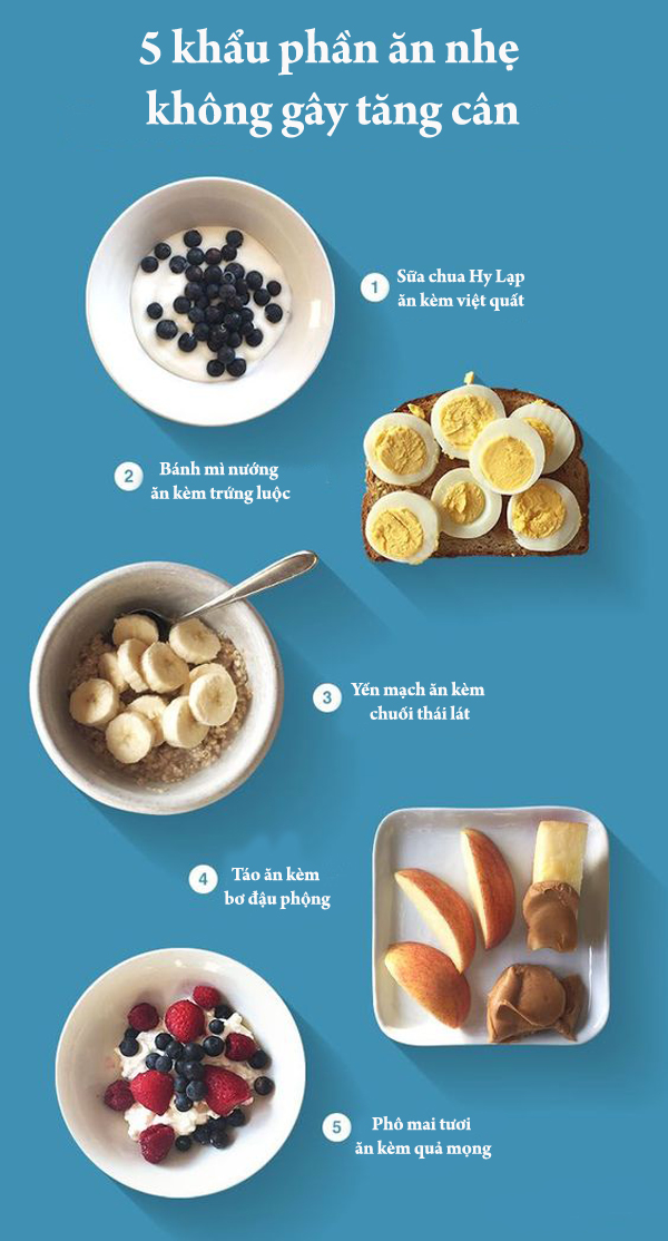 Các món ăn vặt lành mạnh sẽ giúp bạn không quá đói vào bữa tối, tránh ăn nhiều, làm hỏng kế hoạch giảm cân.