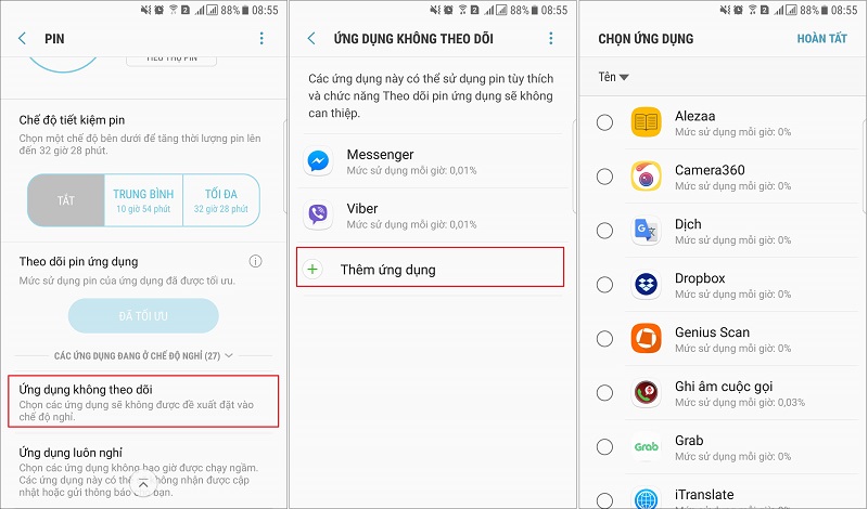 Bạn có thể nhanh chóng xử lý vấn đề này bằng cách tắt tính năng Doze cho các ứng dụng quan trọng với bạn. Vào Settings (Cài đặt) > Battery (PIN) > Battery optimizations (Tối ưu hóa PIN). Tại đây, bạn sẽ thấy danh sách tất cả các ứng dụng được cài đặt trên điện thoại. Bạn chỉ cần tìm đến ứng dụng bạn muốn vô hiệu hóa chức năng Doze và chọn Don’t optimize (Không tối ưu).