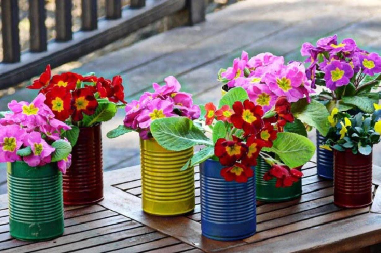Nếu gia đình có người già hoặc trẻ nhỏ hẳn sẽ có rất nhiều vỏ lon sữa. Những vỏ lon sữa rỗng rất cồng kềnh chiếm nhiều không gian lưu trữ trong nhà. Tuy nhiên, chỉ cần tô vẽ một chút bạn có thể được tái chế chúng thành lọ cắm hoa, rất xinh lại còn không phải tốn tiền mua .