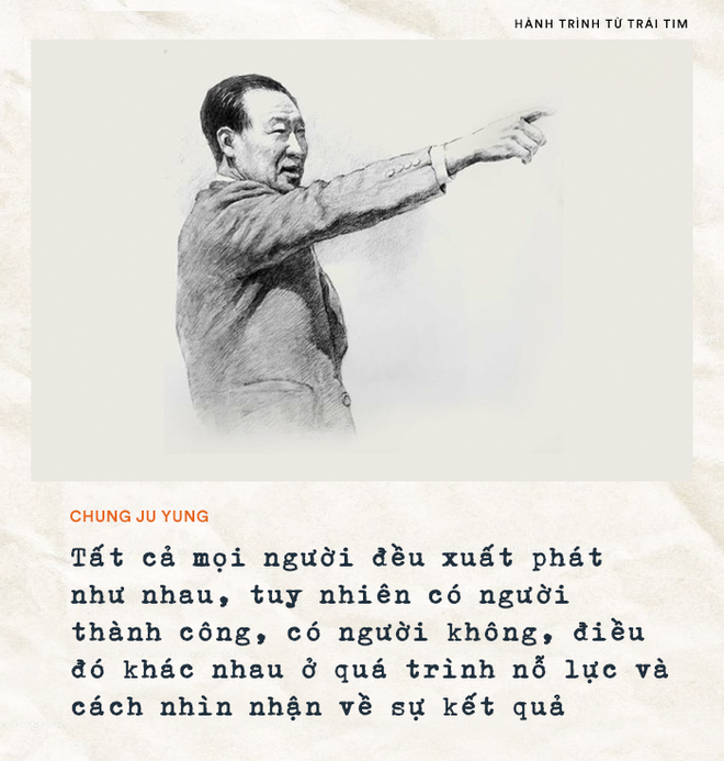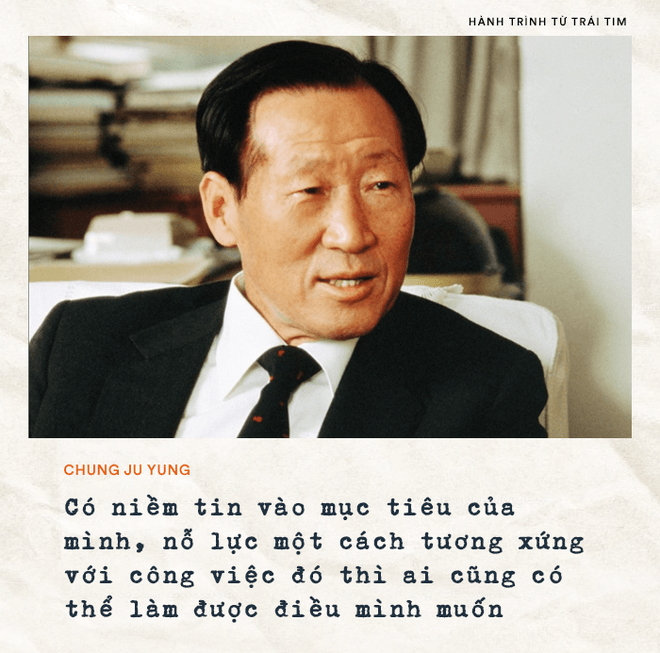 Đối với Chung Ju Yung, trong công việc, không có gì gọi là kỳ tích. Mọi thứ đều phải trả giá bằng sự nỗ lực và suốt cuộc đời mình, khởi đầu cho mọi thành công của Chung Ju Yung đều bắt nguồn từ hai chữ UY TÍN.