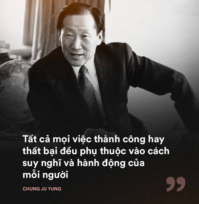 “Nếu trở thành nô lệ của lối suy nghĩ cũ thì sẽ không có tính thích ứng. Suy nghĩ theo sách giáo khoa cũng là một cạm bẫy. Con người tài giỏi phải vượt qua cạm bẫy một cách trí tuệ”, Chung Ju Yung viết trong tự truyện không bao giờ thất bại tất cả là thử thách.