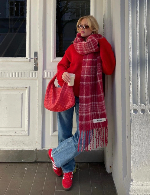 2. Áo khoác kèm khăn quàng và giày thể thao