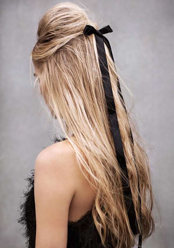 Kiểu tóc này dành riêng cho những nàng yêu thích phong cách điệu đà nữ tính, không chỉ đơn giản, nhẹ nhàng và thu hút mà kiểu tóc này còn chưa mất đến một phút thực hiện. Tất cả bạn cần chỉ là một chiếc chun gắn nơ hay một dải ruy băng màu sắc, tuy nhiên để giúp cho kiểu tóc thêm bay bổng, các nàng nên làm xoăn nhẹ phần đuôi tóc.