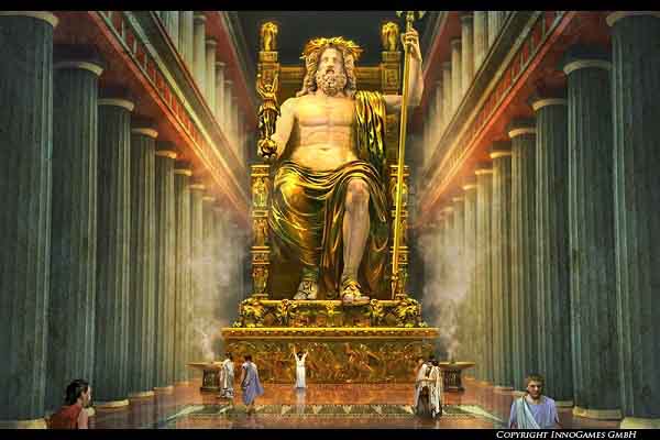 Bức tượng nổi tiếng của thần Zeus, vị vua của các vị thần trong Thần thoại Hy Lạp, được chế tác bởi nhà điêu khắc Phidias của Athen, hoàn thành và được đặt trong đền thờ thần Zeus ở Olympia, nơi diễn ra Thế vận hội cổ đại, vào khoảng giữa thế kỷ thứ 5 trước Công nguyên.