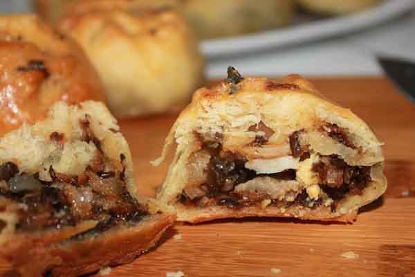 Miếng bánh trắng mịn điểm xuyến thêm màu sắc phía trong của nhân (mộc nhĩ và thịt băm) được cắt thành khúc nhỏ. Phía trên bánh rắc thêm hành phi. Ăn kèm không thể thiếu chén nước chấm bỏ thêm chút ớt. Quệt miếng bánh vào chén nước chấm đưa vào miệng. Thực khách sẽ đê mê bởi đủ thứ hương vị hòa quyện.