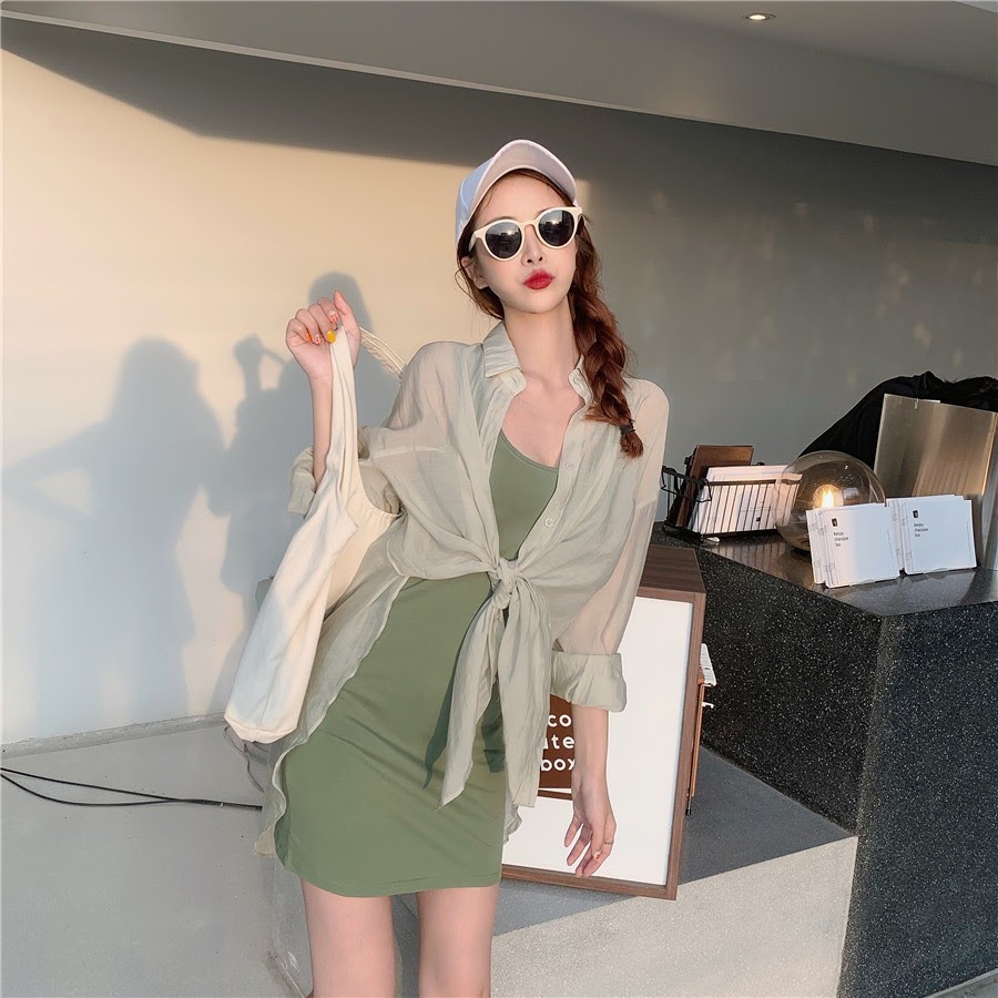 9. Mix váy hai dây ngắn và khoác voan mỏng