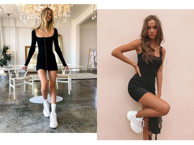 7. Váy ôm body ngắn phối cùng giày cao cổ