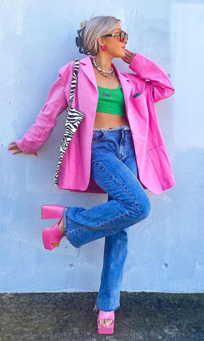 Nếu thập niên 90 quá gần gũi với bạn, hãy thử quay ngược về thời kỳ của nhạc jazz. Phong cách thời trang lấy cảm hứng từ jazz như quần ống rộng lấp lánh, áo crop-top, và blazer oversized đang dần chiếm sóng.