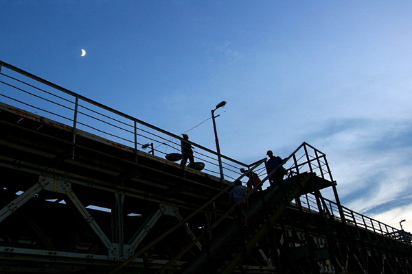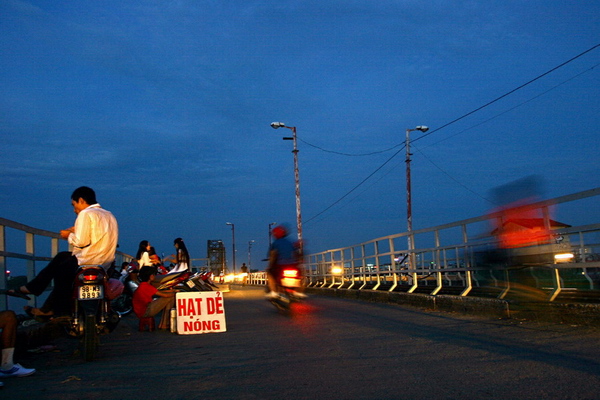 Trời tối dần, một cuộc sống khác trên cầu lại bắt đầu.