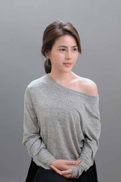Make-up đậm và nhấn nhá chủ yếu vào mắt, lông mày đậm nhưng tự nhiên quyến rũ. Kiểu tóc ép sát và tạo nếp phần đuôi đang là xu hướng của các người đẹp Thái Lan những năm gần đây. Trang sức nổi bật với màu vàng chủ đạo.