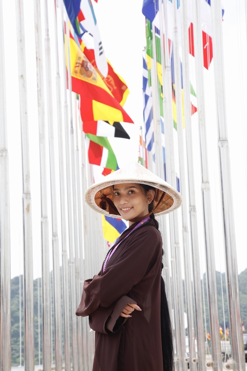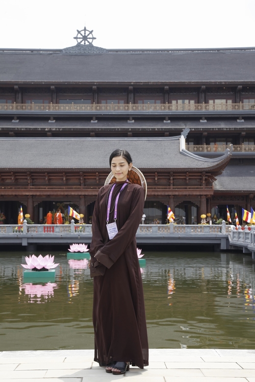 Cụ thể, trong bộ áo nâu nhà Phật, Trương Thị May đã dành nhiều thời gian cùng mẹ viếng cảnh chùa, tham quan, chiêm ngưỡng và tìm hiểu về kiến trúc của quần thể chùa Tam Chúc.