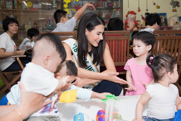 Đương kim hoa hậu đã cùng Miss World Việt Nam – Lương Thùy Linh, Á hậu Kiều Loan, Á hậu Tường San tới thăm và tặng quà tại Trung tâm bảo trợ trẻ em tàn tật mồ côi Thị Nghè.