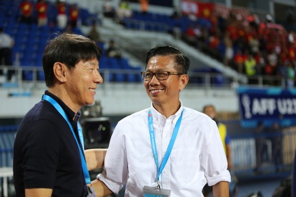 HLV Hoàng Anh Tuấn và HLV Shin Tae-yong (Ảnh: Vương Anh)