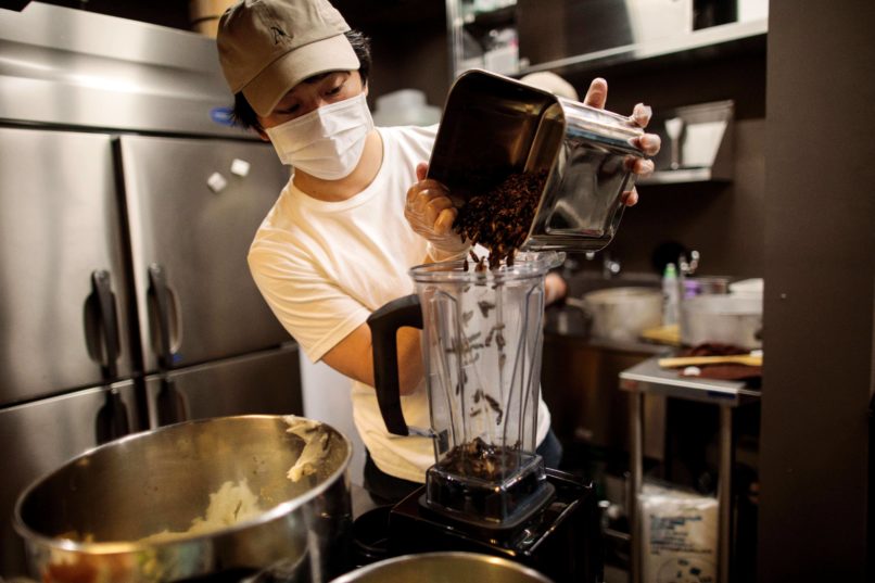 Trong một căn bếp nghi ngút hơi nước ở Tokyo, mùi thịt nướng thoang thoảng lan tỏa trong không khí, Yuto Shinohara- đầu bếp 26 tuổi đang chuẩn bị nước súp cho món mì ramen. Điều đặc biệt, đây không phải món mì ramen thông thường với thịt lợn hay thịt gà mà là từ dế.