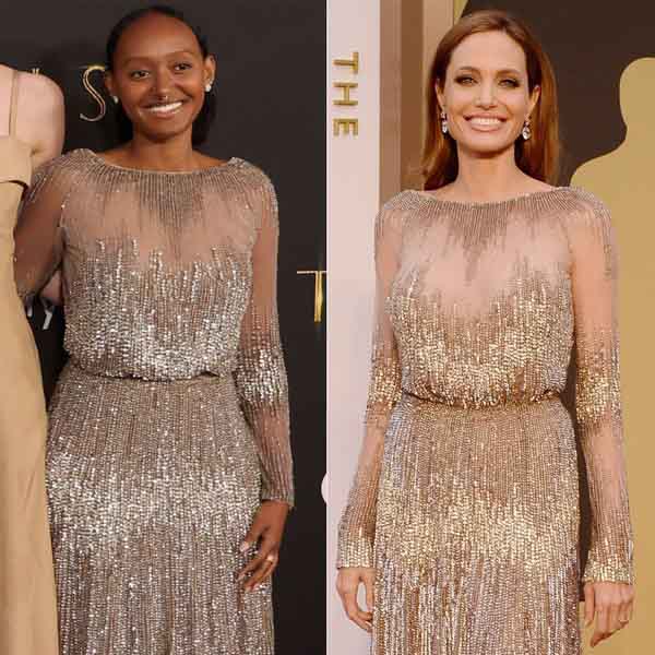 Trên thảm đỏ, bên cạnh Angelina Jolie còn có Zahara, cô con nuôi 16 tuổi từ Ethiopia, được nữ diễn viên nhận nuôi từ 6 tháng tuổi. Zahara diện bộ đầm gợi cảm hơn em gái. Trong một lần trả lời phỏng vấn, mẹ ruột của Zahara nói: “Angelina Jolie đối với con bé giống một người mẹ hơn so với tôi. Cô ấy đã ở bên con bé từ khi nó còn nhỏ, nhưng điều đó không có nghĩa là tôi không nhớ con bé”.