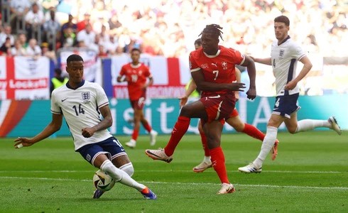 Thụy Sĩ buộc Pickford phải làm việc ở phút 52, từ pha dứt điểm trong cấm địa của Breel Embolo. Sau đó, HLV Murat Yakin cho các học trò đẩy cao nhịp độ và những cơ hội đến nhiều hơn. Phút 75, Thụy Sĩ có được bàn mở tỉ số. Từ cánh phải, Ndoye căng ngang vô tình đưa bóng chạm người John Stones đổi hướng. Nhờ đó, Embolo ập vào đệm bóng cự ly gần.