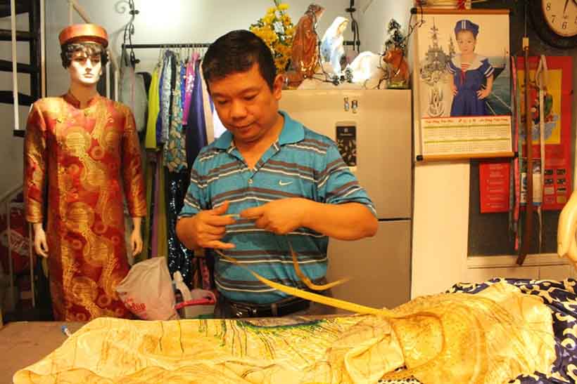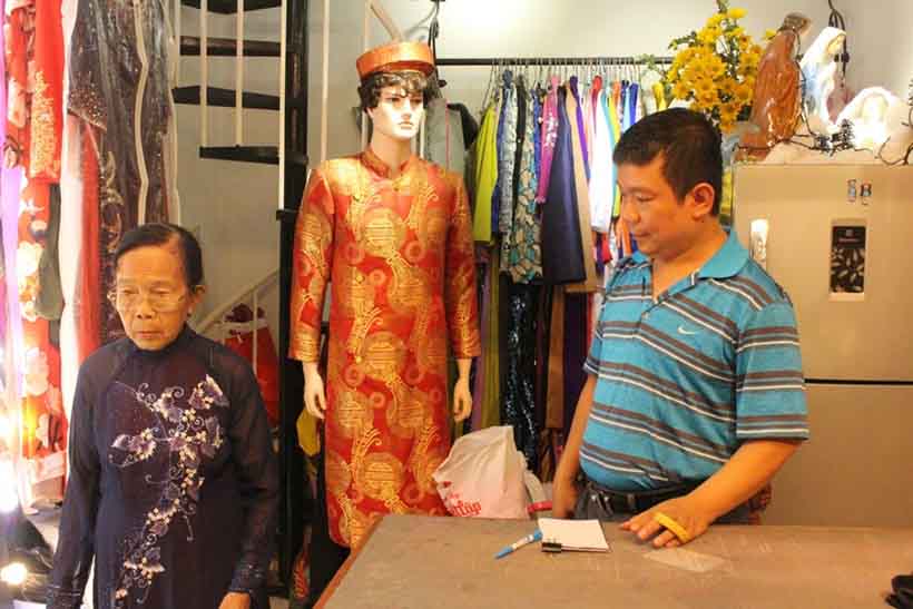 Anh Vinh chia sẻ: “Nhà chúng tôi không có mức giá cố định cho một bộ áo dài, bởi vì may áo dài thì phải tùy vào chất liệu vải, dáng người mặc, hoàn cảnh khách muốn diện bộ áo dài và thời gian mà khách muốn chúng tôi hoàn thành trang phục”.
