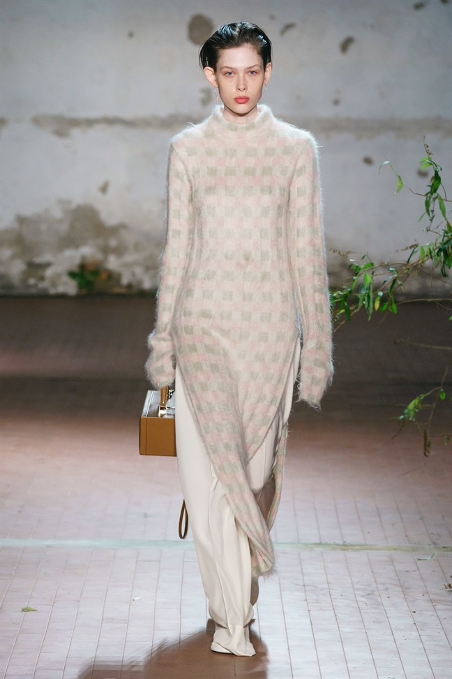 Trong 60 mẫu thiết kế dành cho mùa Thu – Đông năm nay, nhà mốt Sil Sander có 3 mẫu trang phục giống hệt áo dài truyền thống Việt Nam, với những gam màu trung tính, trầm mặc làm chủ đạo.