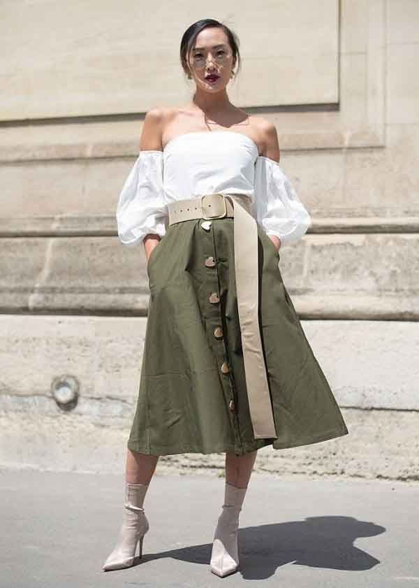 Áo trễ vai sẽ khiến các cô nàng trở nên sexy, tươi trẻ. Nhưng phối với chân váy như thế nào để trở thành thanh nữ phong cách thì bạn cần tham khảo một số cách sau.