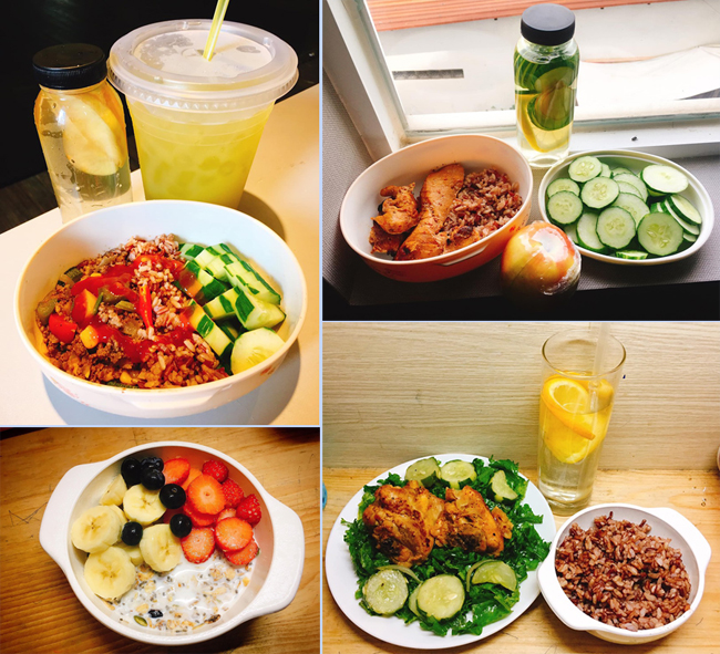 Tháng 8 năm ngoái, ở mức cân 65 kg, bà mẹ 9X bắt đầu đến phòng gym tập luyện với sự hướng dẫn của PT. “Sau một tháng tập luyện và ăn uống theo chế độ PT hướng dẫn mình giảm được 7 kg, người trông gọn gàng hơn hẳn. Mình ăn ít tinh bột, vừa đủ rau xanh và nhiều protein. Mình tuyệt đối không kiêng tinh bột vì thấy thiếu nhóm chất này rất dễ stress. Chủ yếu tiêu thụ carbs tốt từ gạo lứt, khoai lang, bí đỏ, bí ngòi, bánh mì đen… và hạn chế ăn tinh bột vào bữa tối”.