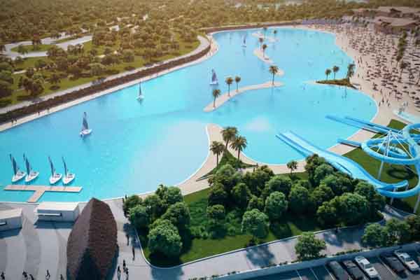Đây là dự án mang tên biển nhân tạo Alovera. Ngoài bãi biển rộng lớn, nơi đây còn có cả các ống trượt nước, những con thuyền buồm, các thiết bị thể thao, dây zip, cũng như nhiều cây cọ và ghế xếp như một bãi biển thực thụ. Về cơ bản, Alovera không khác gì một khu nghỉ dưỡng thiên nhiên.
