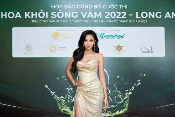 Vẻ cuốn hút của Ngọc Châu tại sự kiện công bố Hoa khôi sông Vàm 2022.