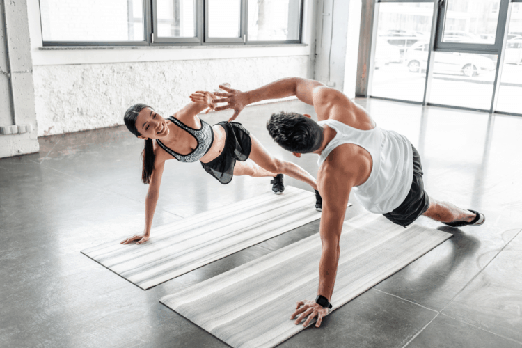 + Bắt đầu với tư thế plank bằng cách giữ cơ thể thẳng từ đầu đến chân, khoảng cách 2 chân bằng hai tay. Nằm úp, hai tay dưới vai và rộng hơn vai một chút với tư thế chuẩn bị hít đất.