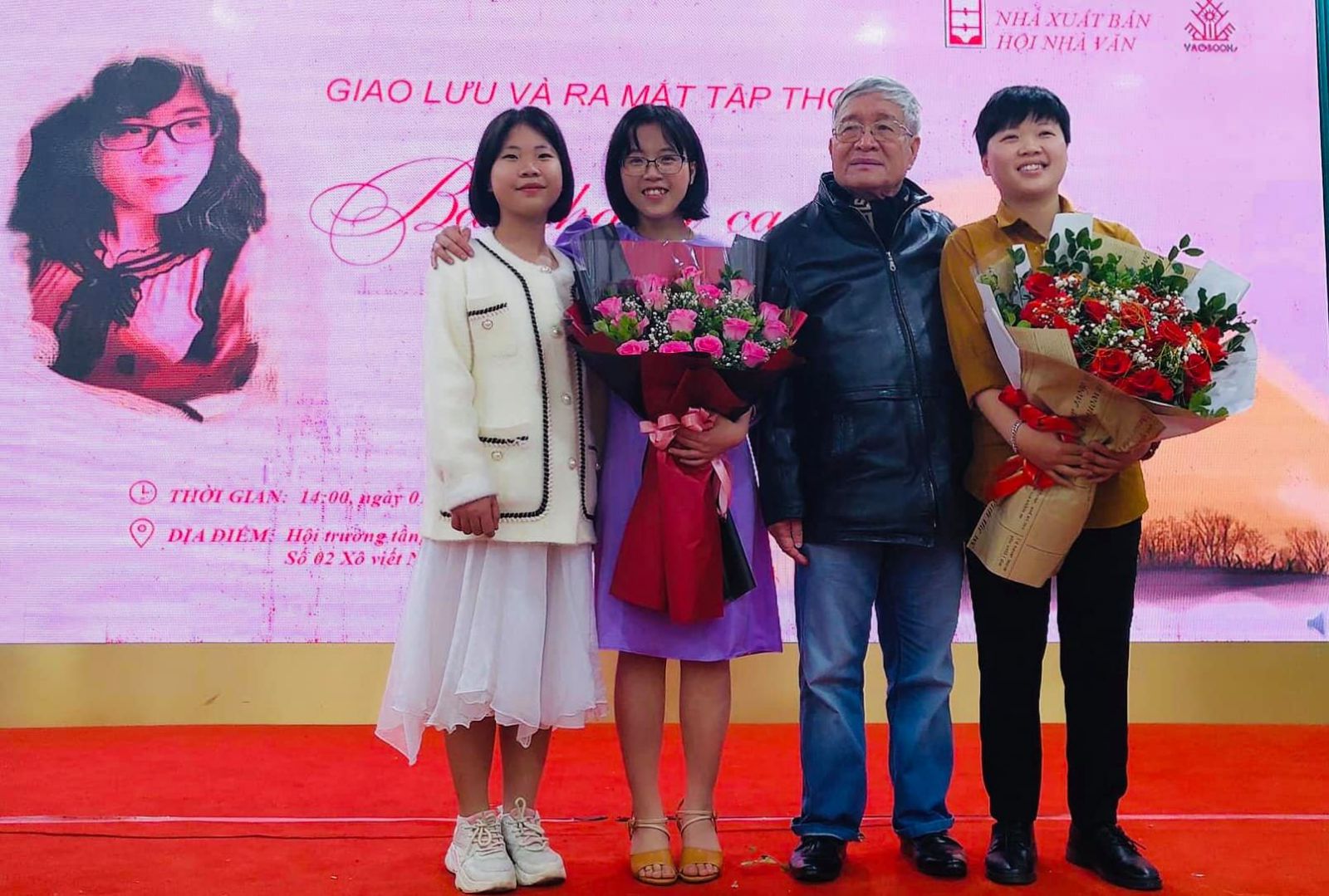 Nhà thơ Nguyễn Thị Hạnh Loan (bìa trái) của Hà Tĩnh cùng các đồng nghiệp đến chia vui và dự buổi ra mắt tập thơ của Hương Giang.