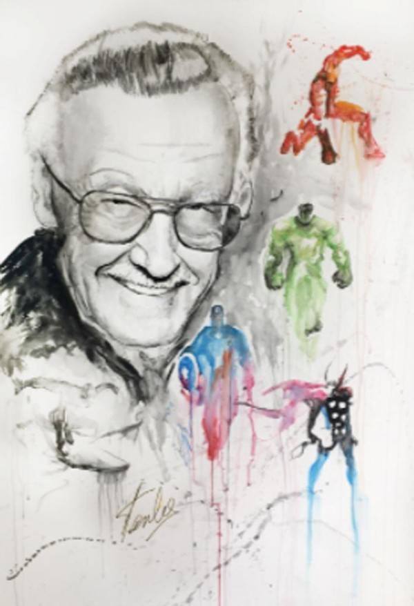 Họa sĩ Stan Lee thuận cả hai tay đã vẽ 95 bức tranh canvas lớn trên bìa truyện tranh Marvel. Mười tác phẩm đấu giá lần này đều có chữ ký của Stan Lee. Họa sĩ tài danh qua đời ngày 12.11.2018 tại Los Angeles, California, thọ 95 tuổi.
