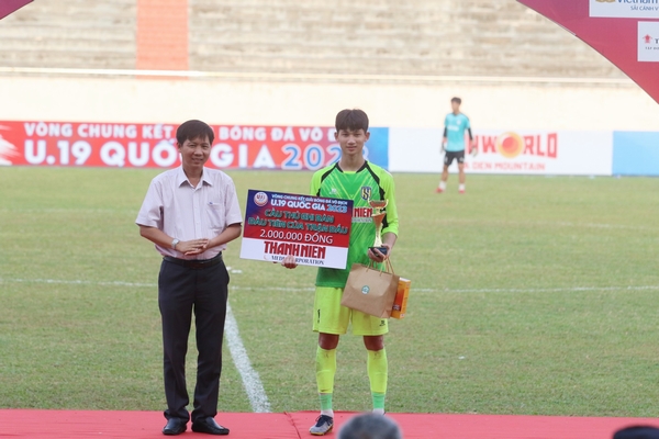 Với 1 pha cản phá thành công, thủ môn U.19 SLNA – Nguyễn Hữu Hậu được bình chọn là Cầu thủ xuất sắc nhất trận đấu. Phần thưởng gồm có Cúp, tiền thưởng trị giá 2 triệu đồng từ Fanpage U.19 – U.21 Thanh Niên, kèm phần quà của Công ty CP Thực phẩm Sức Khỏe Việt và Công ty TNHH CaFe The Town.