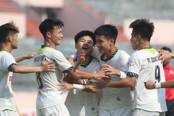 U.19 SLNA ăn mừng bàn thắng của Lê Văn Quý vào lưới U.19 Hà Nội ở phút thứ 16.