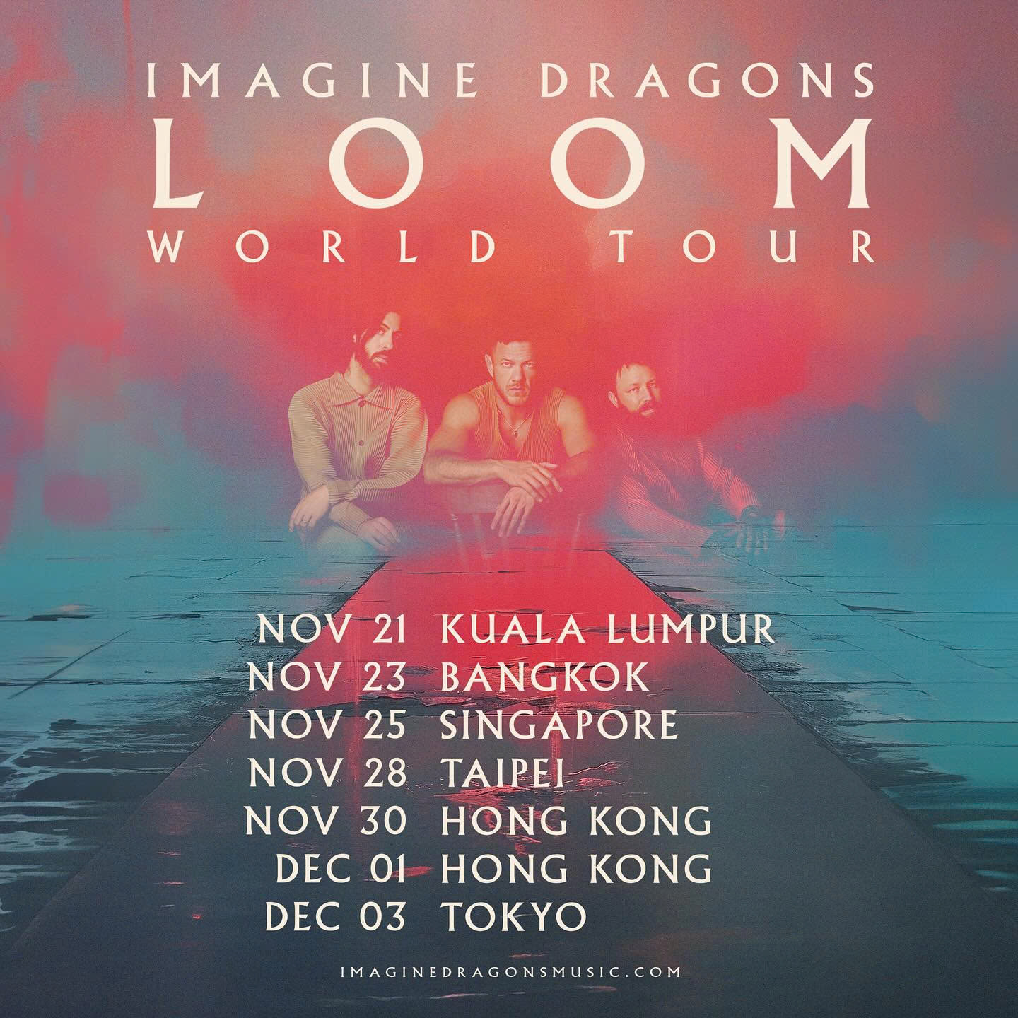Bên cạnh Singapore, Imagine Dragons còn đến Kuala Lumpur, Bangkok, Đài Bắc, Hồng Kông và Tokyo.