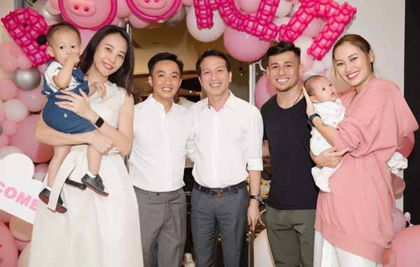 Vừa qua, vợ chồng Cường Đô La – Đàm Thu Trang đã có mặt trong tiệc sinh nhật con gái Boorin của Diệp Lâm Anh. Xuất hiện trong bữa tiệc còn có vợ chồng stylist Pông Chuẩn. Bộ ba Diệp Lâm Anh – Đàm Thu Trang và Pông Chuẩn là bạn thân nhiều năm nay nên khi lập gia đình, cả 3 nhà đều có mối quan hệ thân thiết với nhau.