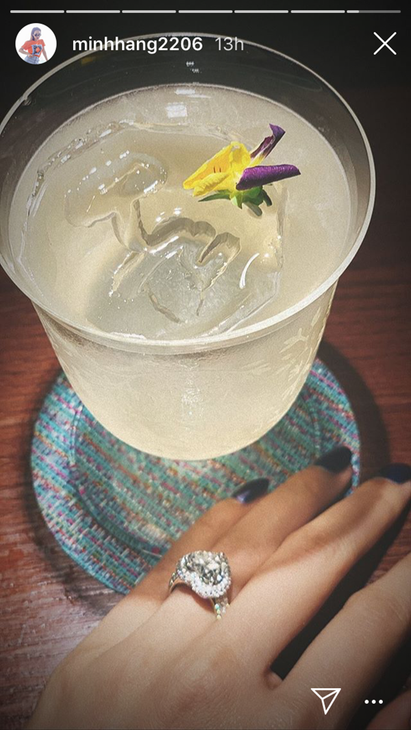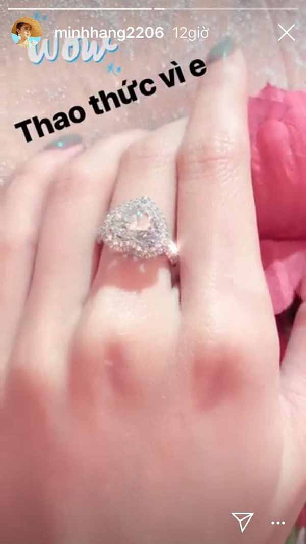 Thực tế, chiếc nhẫn kim cương này đã từng được Minh Hằng đăng tải trên trang cá nhân từ tháng 11 năm ngoái, thời điểm cô gây xôn xao vì tin đồn hẹn hò, đi du lịch cùng người tình bí ẩn. Động thái úp mở về chiếc nhẫn bí ẩn này của Minh Hằng khiến fan hâm mộ không khỏi bất ngờ và đồn đoán phải chăng cô sắp lên xe hoa ở tuổi 32?