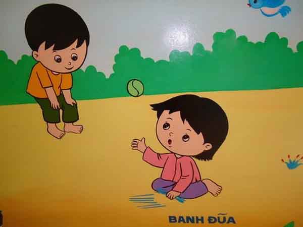 Một bữa, đang chơi ở sân nhà tôi thì Hằng chạy qua, tay cầm trái banh nỉ, Hằng dè dặt:
