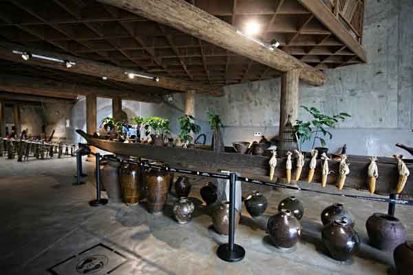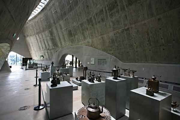 Một phần của công trình được “chôn” xuống đất, tạo nên nhiều tầng bậc, dẫn dắt người xem với nhiều điều thú vị, gợi mở những khám phá trên những bước chân. Nhìn một cách tổng thể, kiến trúc công trình là một sự tự do, bay bổng, ngẫu hứng nhưng vẫn khoa học, chặt chẽ, kín đáo, bền vững của thể loại công trình bảo tàng. Bê tông trần là chất liệu chủ đạo, hiện diện ở mọi diện tường – mái trong nội thất. Còn lại là gỗ, đá, sàn mài xi măng; chỉ vậy thôi. Tất cả tạo nên sự thô mộc, giản dị phóng khoáng và phù hợp với hình khối và cấu trúc công trình.